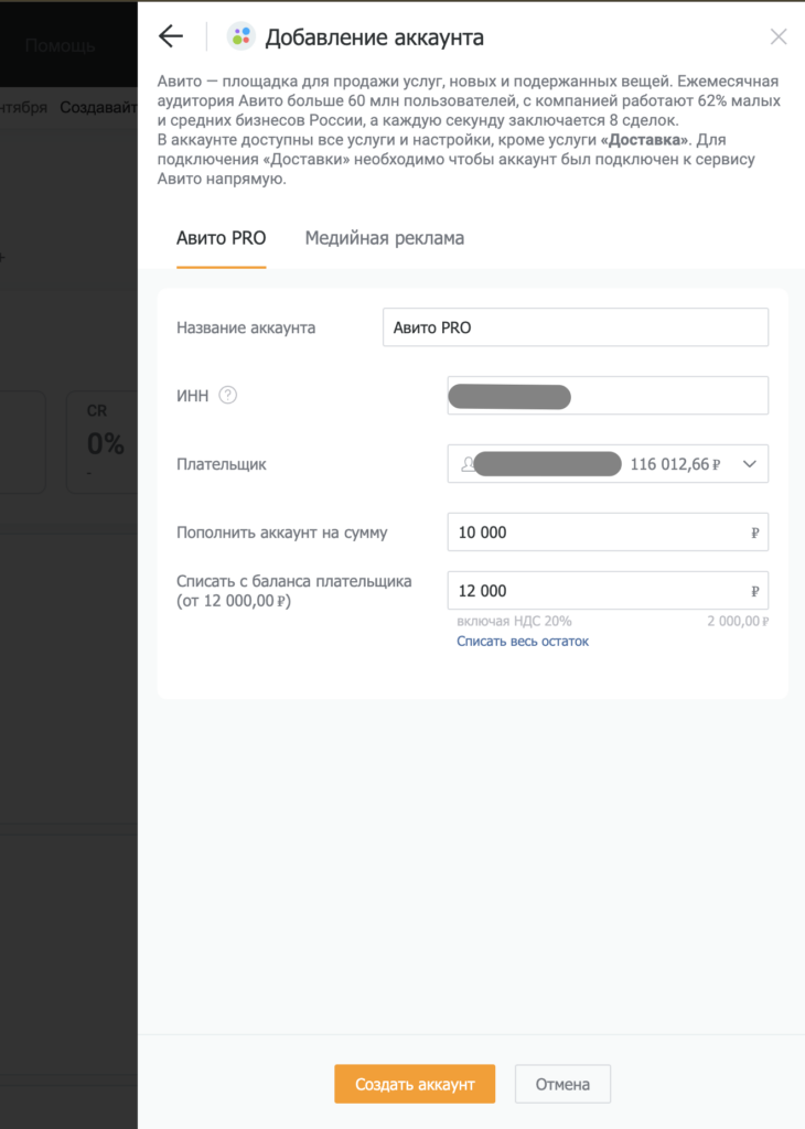 В PromoPult создать и пополнить баланс прямого рекламного аккаунта на Avito могут только юридические лица или ИП. Также обращаем внимание, что пополнять созданные аккаунты нужно только с баланса PromoPult. В этой статье пошагово расскажем, как это сделать.